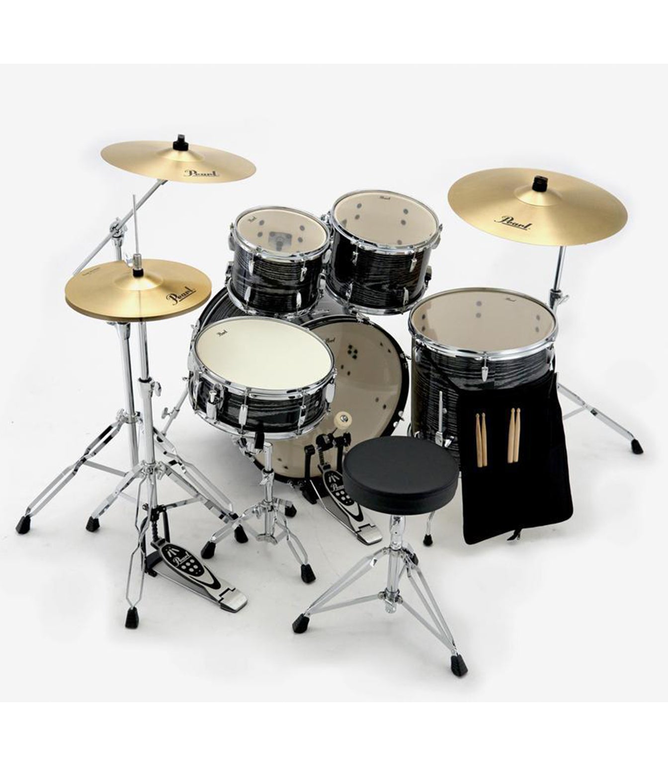 | Drumheads | Pearl Clear (toms), Pearl Coated (snare), Pearl Clear Batter and Coated front (bass) |