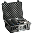 The Pelican 1550 Case with Foam (Black) is an unbreakable, watertight, airtight, chemical-resistant, corrosion, and dustproof hard case used to carry any kind of equipment that needs to be protected from the elements. It is made of Ultra-High Impact structural copolymer for strength and durability. It includes a 0.25" neoprene O-ring, easy-open double-throw latches that seal perfectly, and an automatic pressure equalization valve for quick equalization after changes in atmospheric pressure. The case has a comfortable rubber overmolded handle.